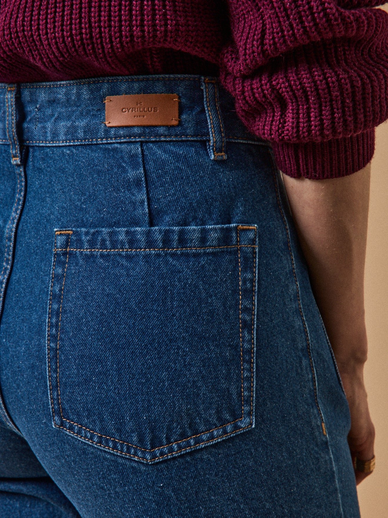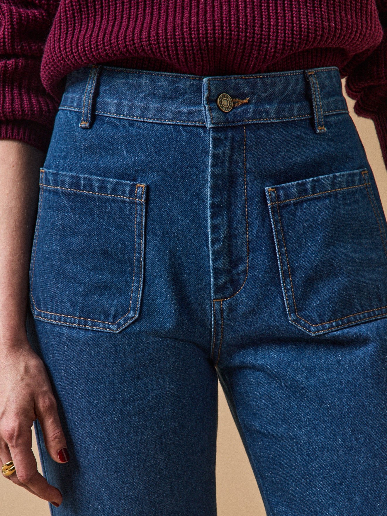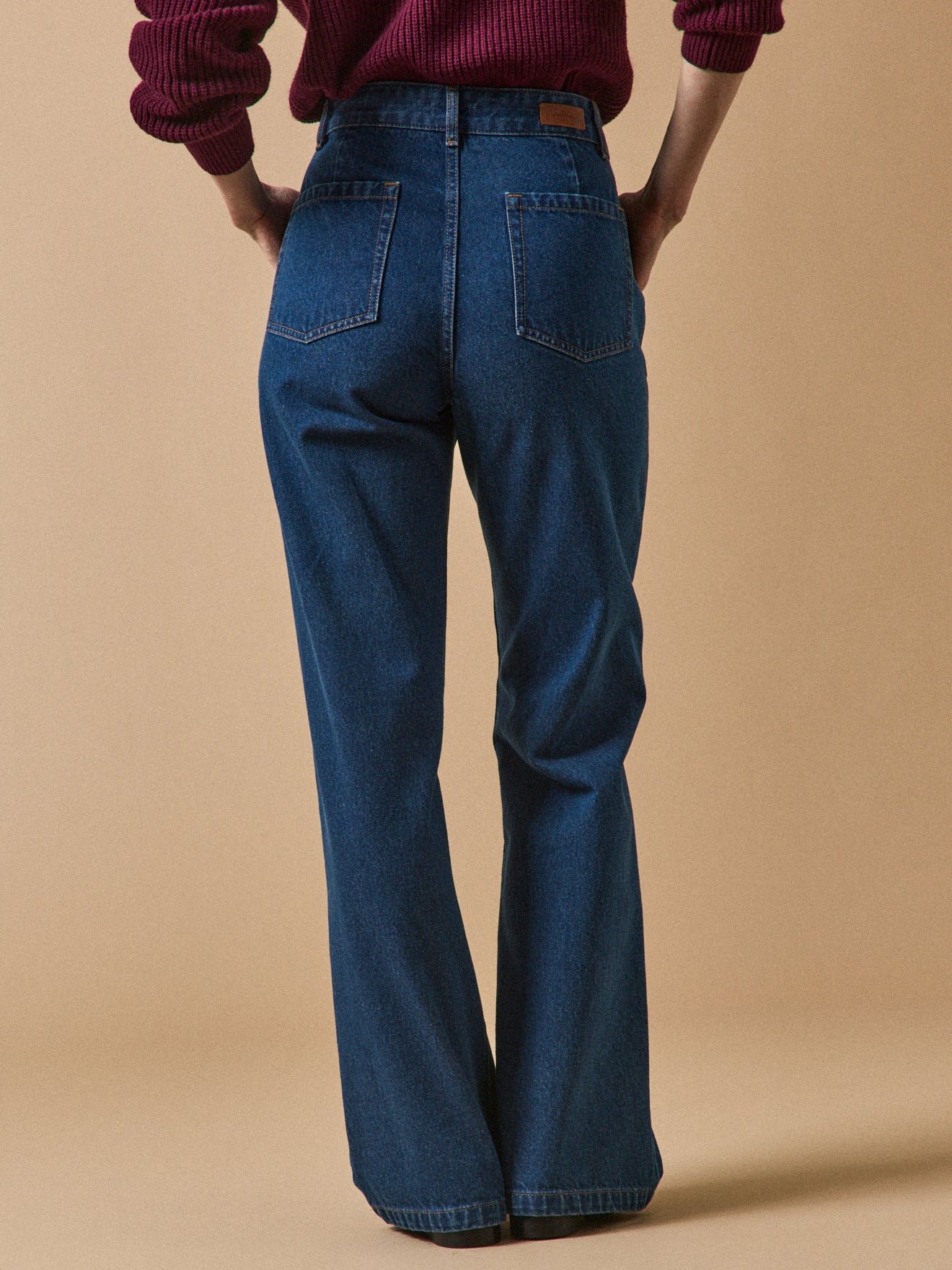 Patch pockets front and back and a flared leg. Made with hardwearing, certified organic cotton denim, these jeans deliver assertive style with casual elegance. Whether for the office, in town or off-duty, this easy piece will take you through the season.